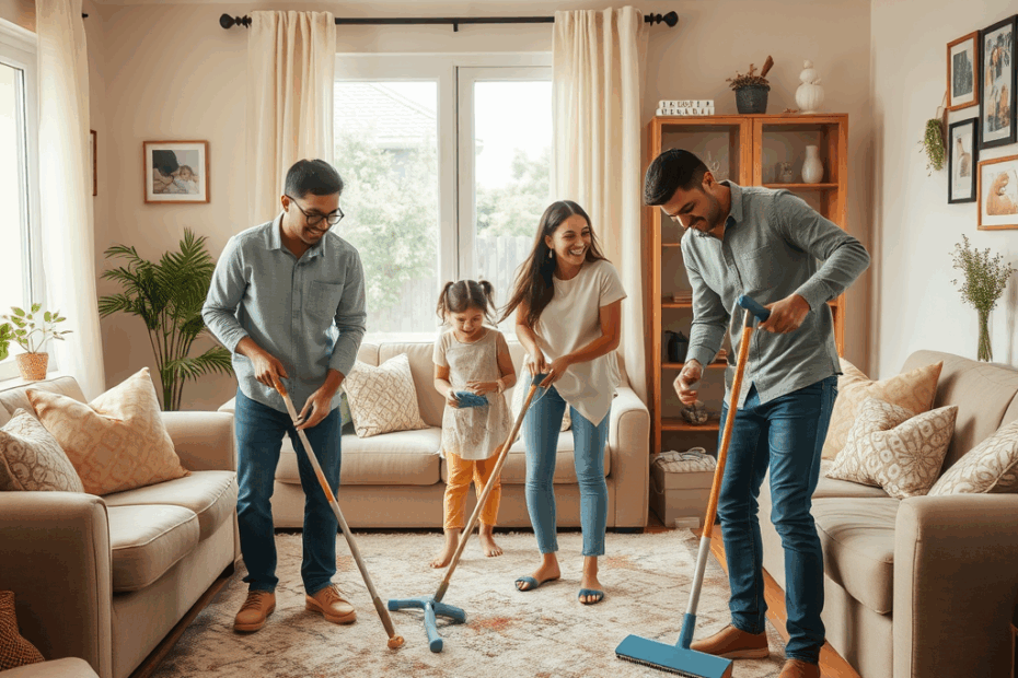- Обучайте детей и членов семьи участвовать в уборке;